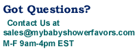 | My Baby Shower Favors is here to assist you with your party needs. We offer a wide variety of favors for your special occasion - feel free to use the side menus or search feature to browse our site. You can also use the navigation menus at the bottom of the page. We have various contacts in the industry and plan to add additional products to our site as time progresses. If you are looking for a specific item that is not featured on this site, feel free to email us your requests. Also, if you have any other questions at all regarding products or services featured on our website, click on the 'Contact Us' link and we will respond as promptly as possible to your inquiries. © Copyright 2005-2008 - All rights reserved. This website designed and copyrighted by the webmasters at My Baby Shower Favors, LLC. |