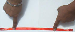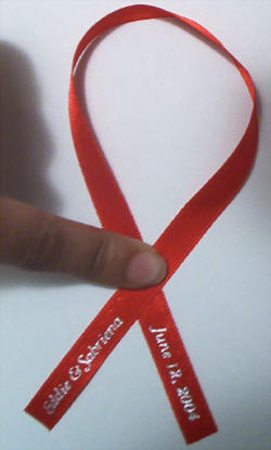 The ribbon should be placed upside down but the print should be facing you. The names should be on right and the date on left. |