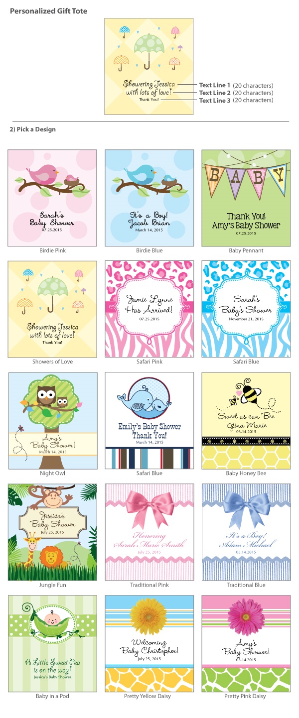 These gift tote bags come filled with 8 personalized baby shower hershey kisses and personalized card on the front - a memorable party favor for your baby shower. Easy to assemble - ribbon is not included.